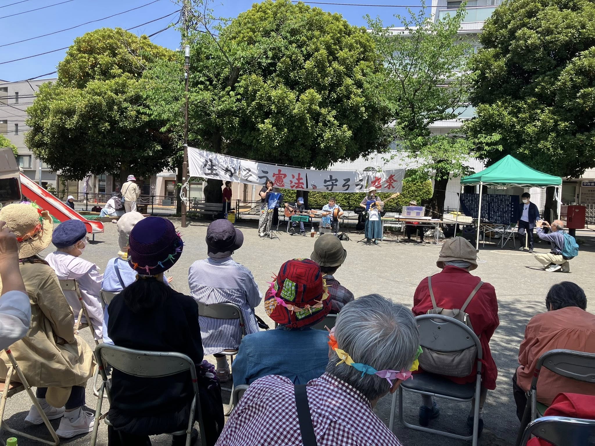 5月3日は憲法記念日です。川崎市多摩区では「憲法まつり&ピースパレード」を開催。今年で18回目です。全国で憲法を守れと集会が開催され、首都圏では大集会もありますが、私たちは「都心の大集会には行けなくても、地域から声をあげよう」と、続けているのです。