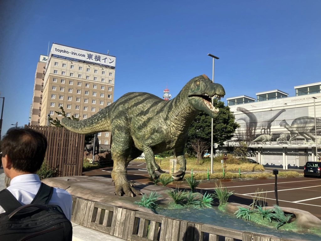 大阪から福井に行くには、サンダーバードという特急で敦賀に行って新幹線に乗り換え。あ、これが京都で争点になっている新幹線問題なんだな。福井って恐竜