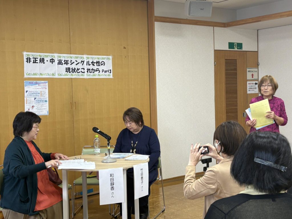 11月8日、非正規の中高年シングル女性の住まいを考える,という、行政では思いもつかないテーマのシンポジウムに参加しました。川崎の男女共同参画をすすめる会がもう何年も取り組んでいるテーマの一環で、住まい問題に焦点をあてたものの、パート2です。今回は実践編。このテーマを追いかけているライターの和田静香さんと、伊勢原市で居住支援法人をして実際に支援している不動産会社の竹田恵子さん。氷河期世代はまもなく定年を迎えます。少ない年金で賃貸に住み続けられるのか、ものすごい不安が襲います。